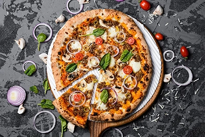 - La pizza la puedes hornear dentro de la bandeja redonda a la máxima temperatura. Es una buena idea adquirir una piedra de cordierita aparte que tenga las dimensiones apropiadas para caber dentro del Rostò Titanium.
